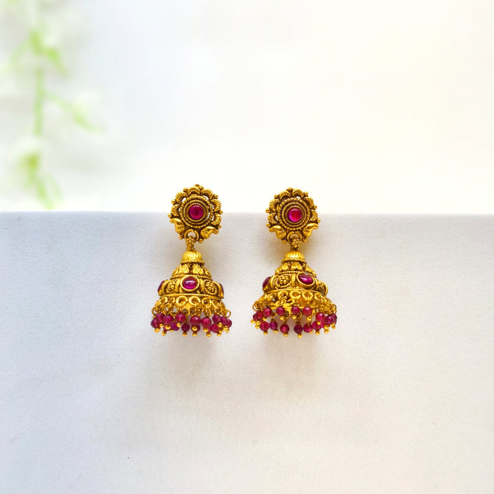 Red Beads Antique Jhumka